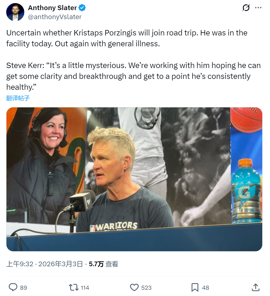 勇士球迷要气炸了!主场迎战快船的比赛,新援波尔津吉斯又双叒叕缺阵了,自加盟勇士以来,他总共就打了 1 场比赛,缺席足足 9 场,出勤率低到离谱。